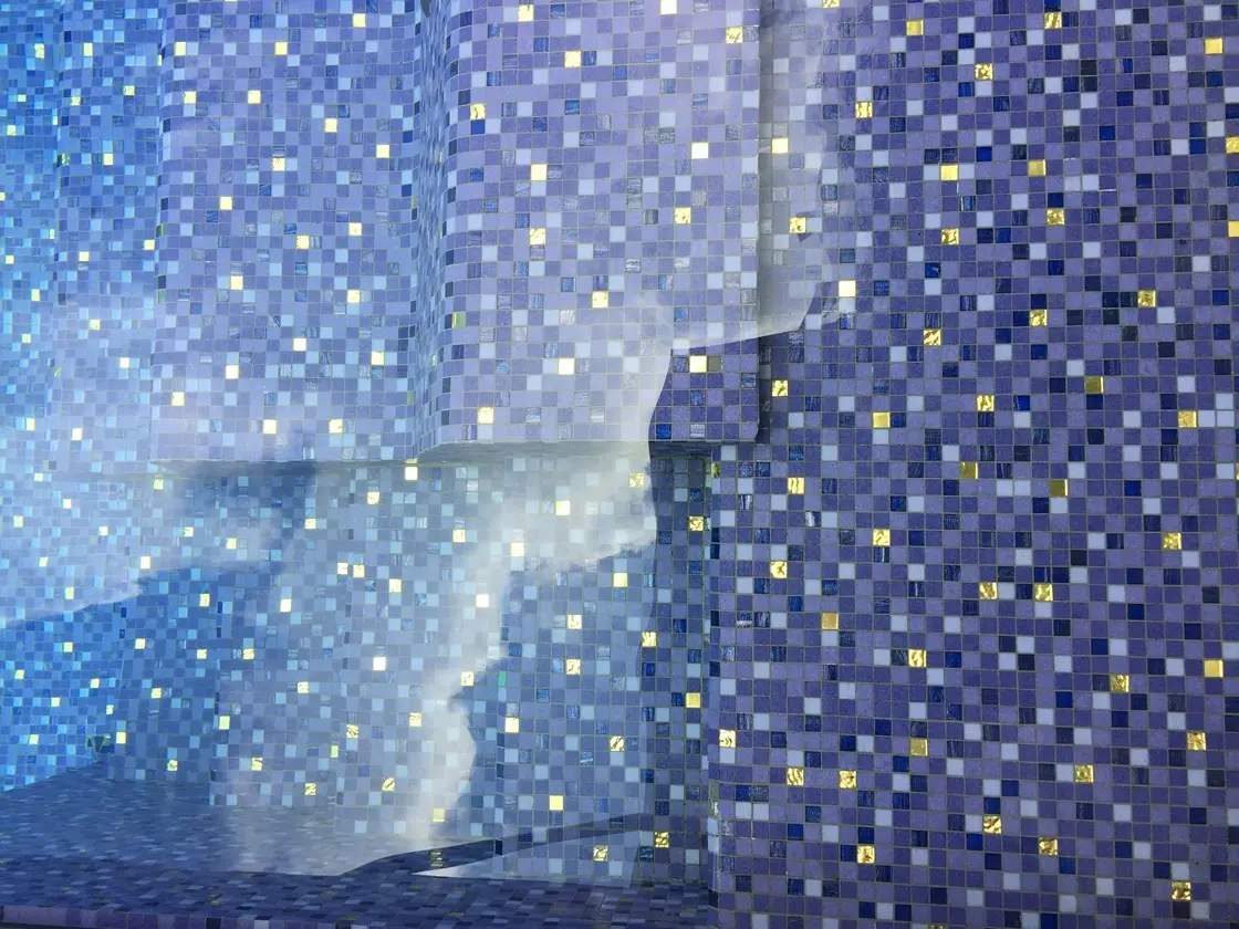 Discover the mystical allure of Mosaic Mix Indigo, a 2x2 cm glass mosaic collection curated to reflect the sophisticated luxury of Hotel Indigo Bangkok. This bespoke mix features a rich palette of Deep Violet and Indigo tones, evoking a sense of profound elegance and mystery. The crowning jewel of this collection is the integration of Genuine Gold Leaf Mosaics, strategically placed to create mesmerizing highlights and a regal shimmer that beautifully contrasts the deep violet hues under both sunlight and artificial lighting.