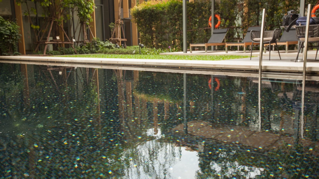 The high-quality glass provides a luminous depth that interacts beautifully with ambient lighting. When lit, the subtle gold infusions glimmer against the dark backdrop, creating a "Sparkle in the Dark" effect that exudes prestige and metropolitan charm. It is the perfect choice for creating a striking feature wall, a luxurious bar counter, or any space that demands a bold, high-end design statement.