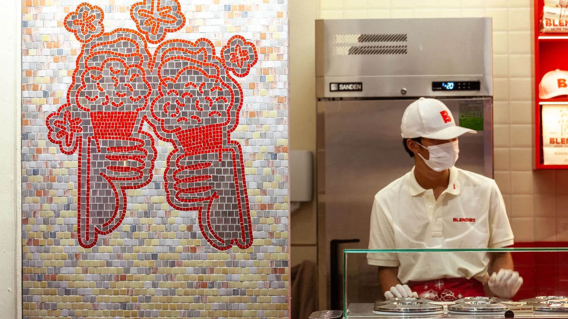 The highlight of this project is the curated color palette, designed to evoke a sense of playfulness while maintaining a sophisticated, high-end aesthetic. The shimmering mosaic surfaces on the counters and feature walls interact beautifully with the boutique’s lighting, resulting in a clean, modern, and uniquely memorable environment. This collaboration transforms Blendies into a visual destination where guests can savor both exquisite flavors and impeccable design.