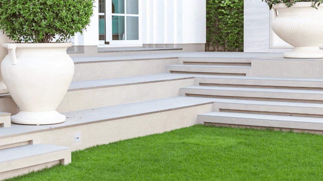 The project’s hallmark is the fluid application of quartz patterns, spanning from the expansive pool decks to the integrated seating areas and meticulously crafted staircases. This monochromatic stone foundation sets the stage for the project’s crown jewel: a swimming pool finished with Custom-sized Azure Glass Mosaics. These uniquely dimensioned mosaics were selected to provide a deeper, more vibrant crystalline glow, creating a striking contrast against the neutral quartz landscape. The result is a private sanctuary that radiates sophisticated tranquility and unparalleled design harmony.