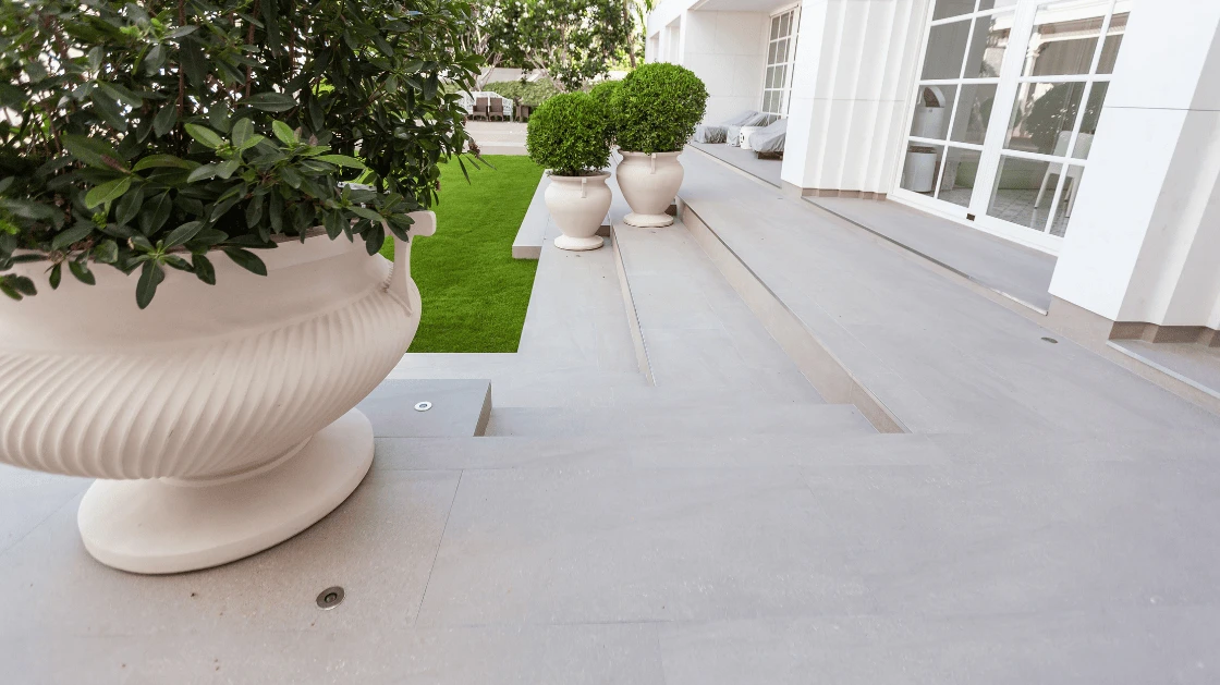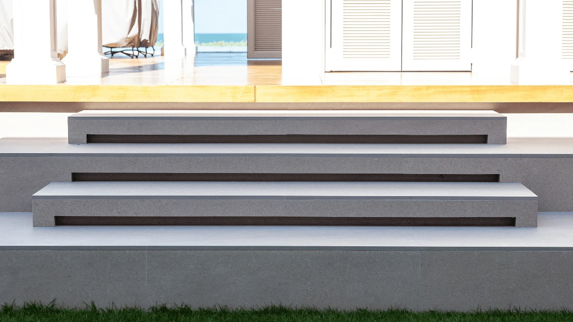 This private beachfront residence in Cha-Am is a masterpiece of seamless outdoor living. Bel Vedere was entrusted to create a cohesive environment that bridges architectural strength with natural serenity, primarily through the extensive use of Premium Quartz-textured Tiles across all exterior surfaces.