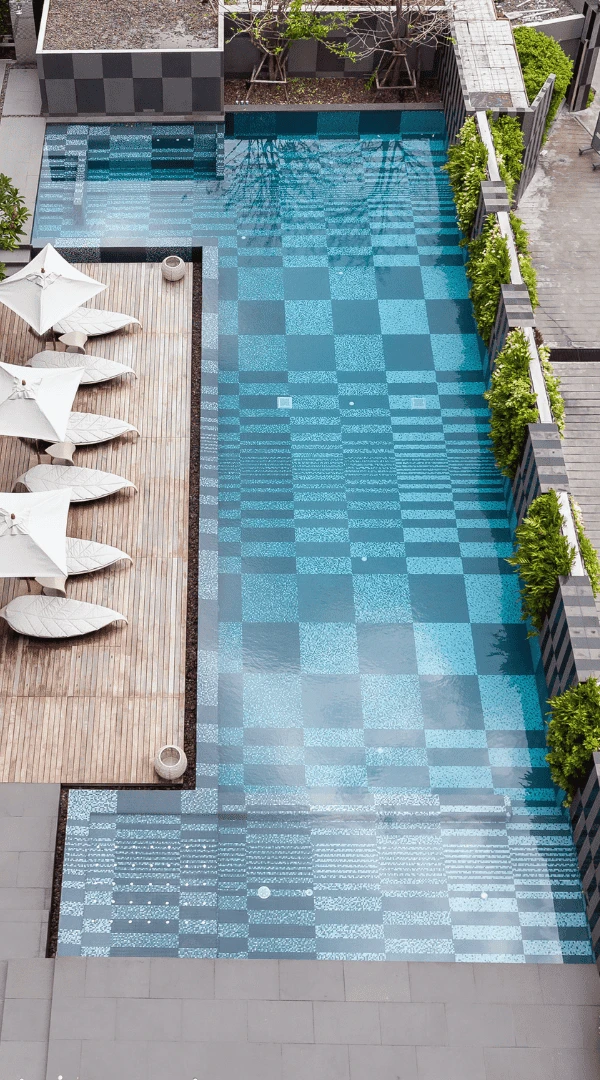 The project features intricate geometric and organic motifs, achieved through precise mosaic placement. Each pattern was carefully calculated to ensure a seamless flow across architectural surfaces, from the serene pool areas to the elegant common spaces. By blending curated tones into specific patterns, we created a "Light and Shadow" effect that mimics the natural dappling of leaves, perfectly embodying the Botanical concept. In this project, the mosaic is not merely a finish; it is a tapestry of luxury that harmonizes urban living with the serenity of nature.
