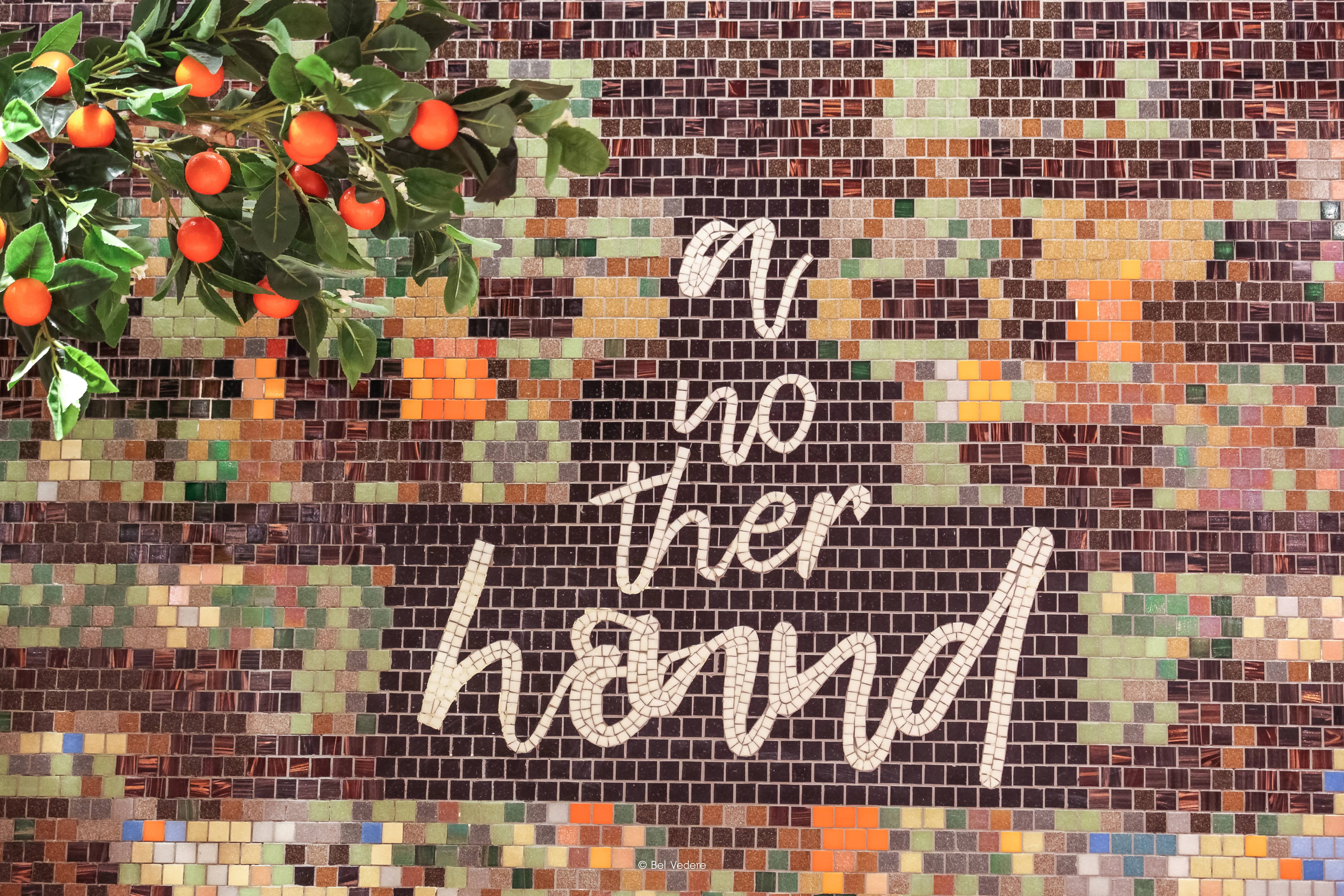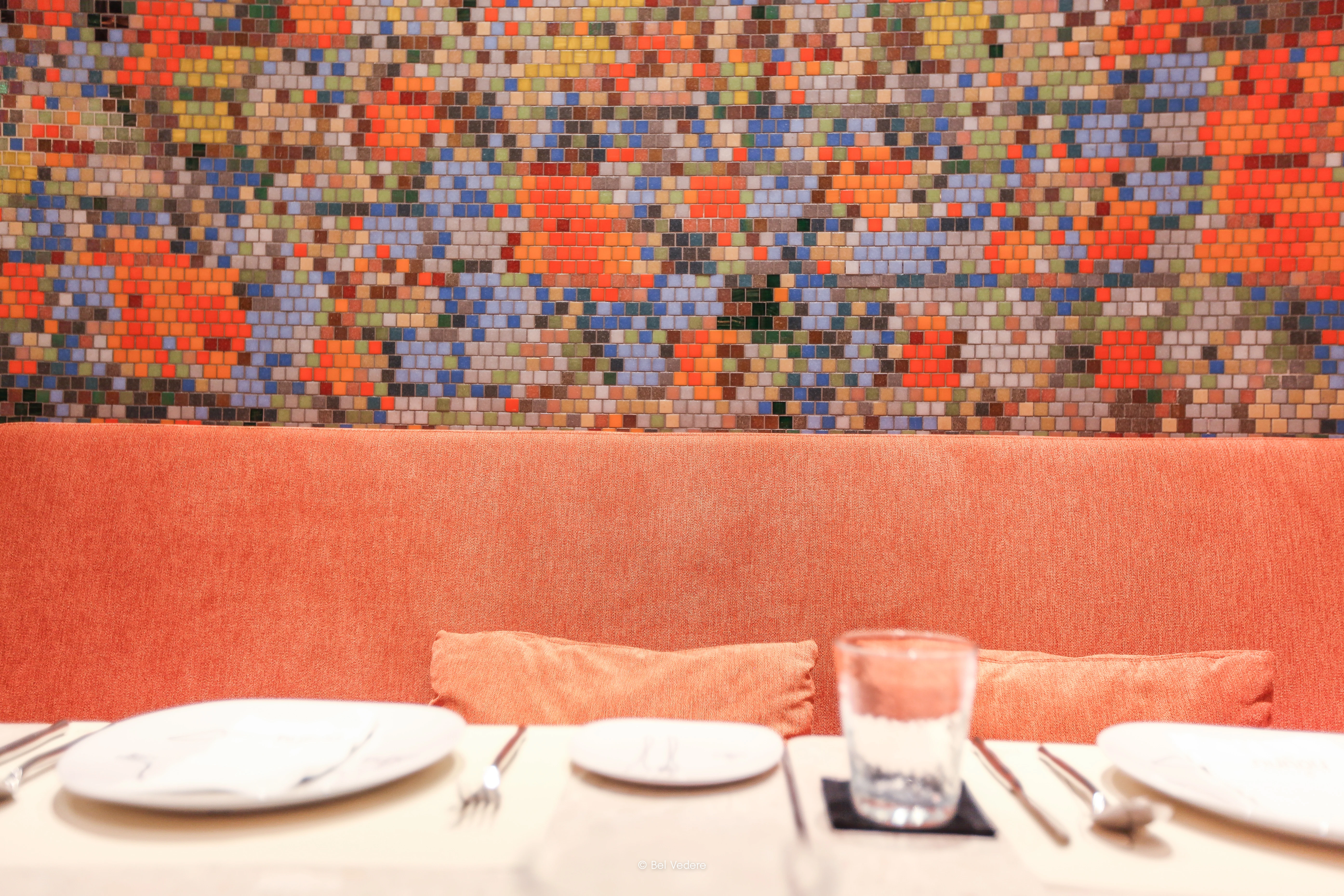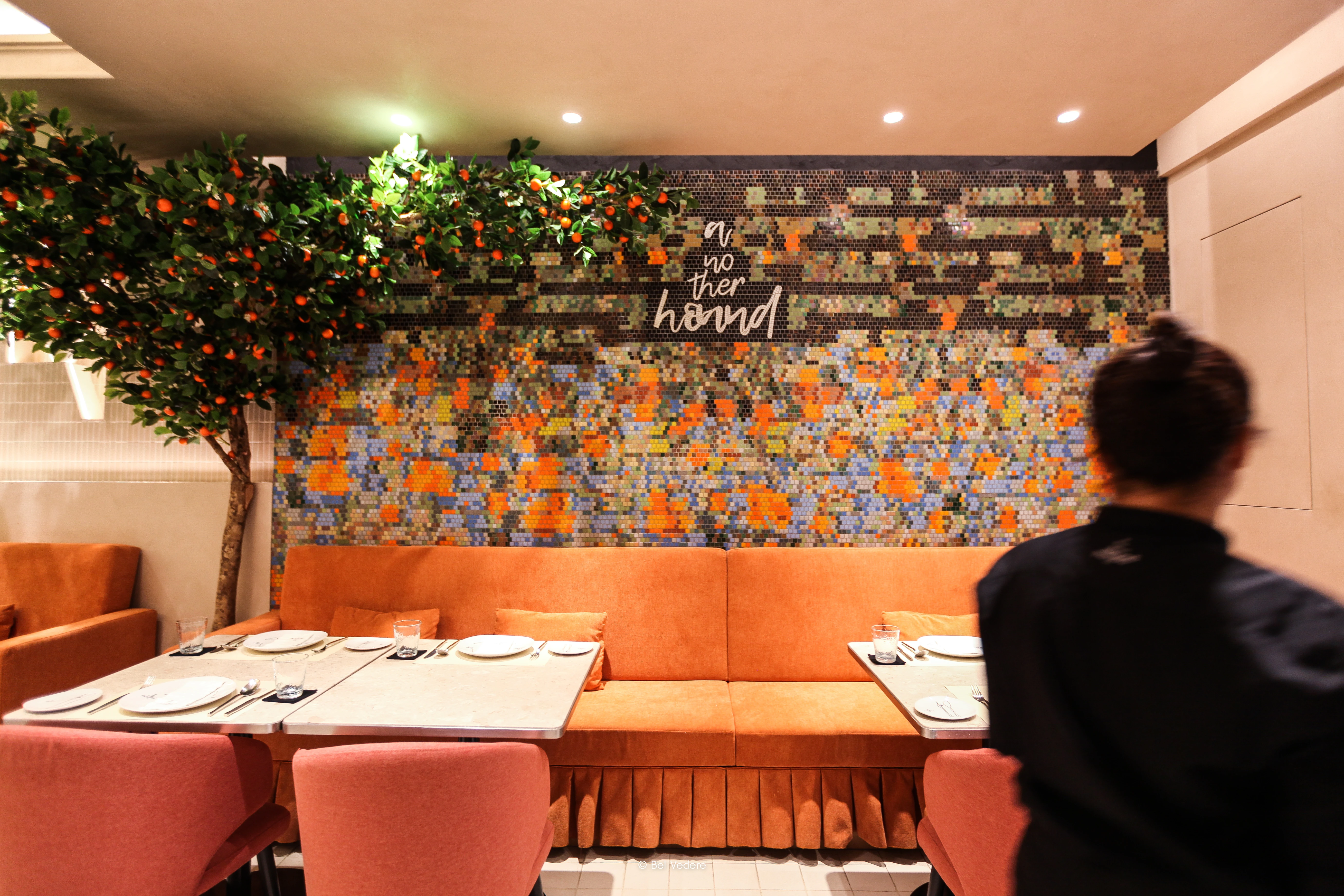 Another Hound คือพื้นที่ที่ผสมผสานความคลาสสิกเข้ากับความล้ำสมัย Bel Vedere ได้รับเกียรติในการเนรมิตผนังโมเสกที่เป็นไฮไลท์หลักของร้าน โดยทำงานร่วมกับสถาปนิกอย่างใกล้ชิดเพื่อถ่ายทอดวิสัยทัศน์ผ่าน "งานโมเสกสั่งทำพิเศษ" (Customized Mosaic) ที่มีความซับซ้อนสูง